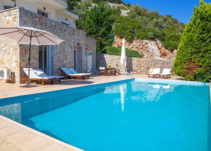 The 4-bedroom Epidavros Land Villa Orfeas features a terrace with views of the mountain as well as a swimming pool. Featuring parking, this accommodation is located around 10 minutes' drive from Kalamaki beach.